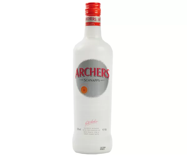 Archers Peach Schnapps is a highly popular premium fruit schnapps created in England, using the fresh flavours of ripe peaches in a refreshingly sweet liqueur. An English classic. 18% ABV.