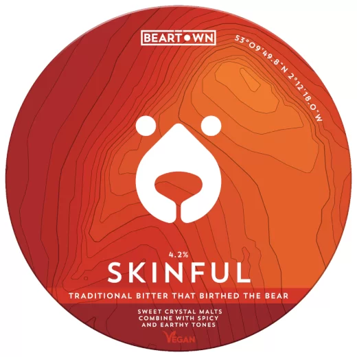 The beer that birthed the Bear – In a time since gone “Bearskinfull”, as it was then known, was the one and only beer that Beartown produced. Times have changed but Skinfull remains as popular as ever. Pouring a Deep Amber, Sweet crystal malts combine with spicy and earthy tones from Homegrown UK Hops to bring to life to this tried and tested traditional style.