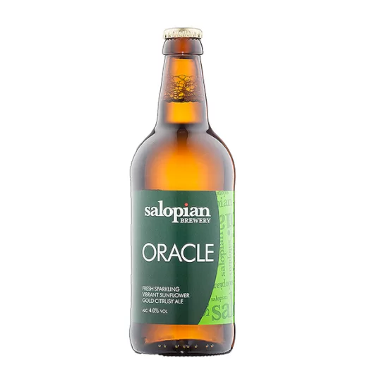 Salopian's Oracle has an ABV of 4% and is a crisp sparklingly sunflower gold ale with a striking hop profile. It is dry and refreshing with a long citrus aromatic finish.