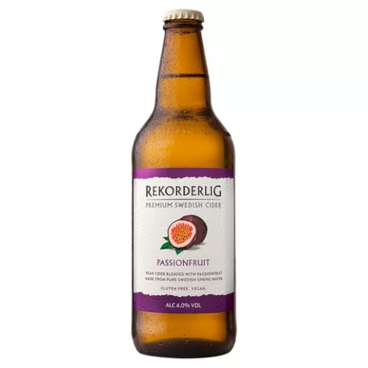 Rekorderlig Passion fruit is bursting with passion fruit flavours. 4% ABV.