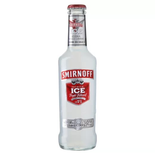 Smirnoff Ice has an ABV of 4.5% and is a premium ice vodka mixed drink. It is made from Smirnoff Vodka with a classic taste of lemon.