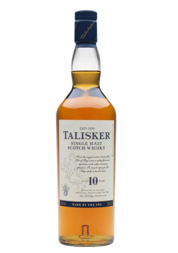 Talisker is a 10 year old Single Malt Scotch whisky that has been distilled on Skye since 1830. It is distinctive, easily recognised and bottled at the unusual strength of 45.8% ABV. Talisker is a full bodied and smoky, Island whisky.